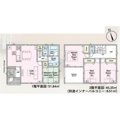 号棟番号:3号棟 22条区域 物面積に別途ルーフバルコニー約8.51平米有り |